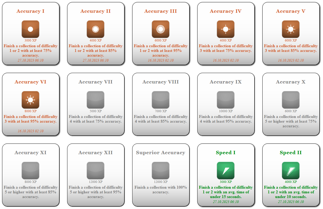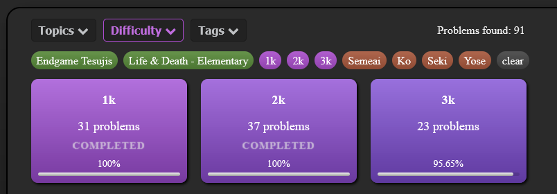 • Collection difficulty: Instead of a difficulty value from 1 to 9, the average kyu/dan rank is shown.